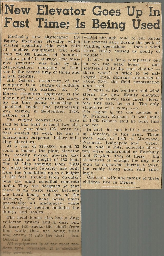 […] interviewed in 1949 about his first, independent, Mayer-Osborn Construction venture in McCook, Neb., William Osborn named a number of elevators he had built before. We still believe all of the […]