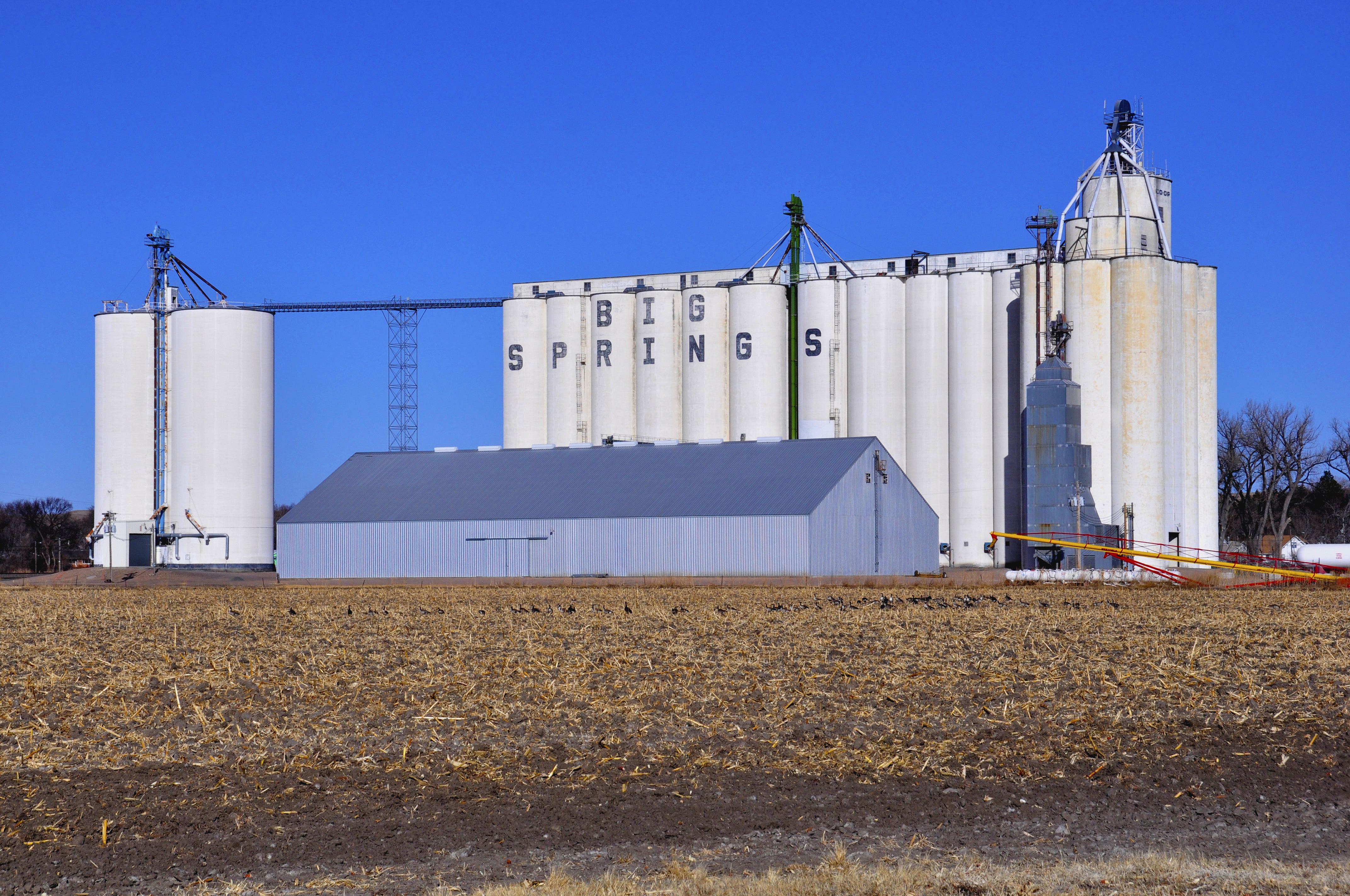 The first two elevators had access to a rail line, and when the third elevator was built by Mel Jarvis Construction of Salina, Kan., it had no rail access, so runs were built connecting it to the other elevators.