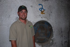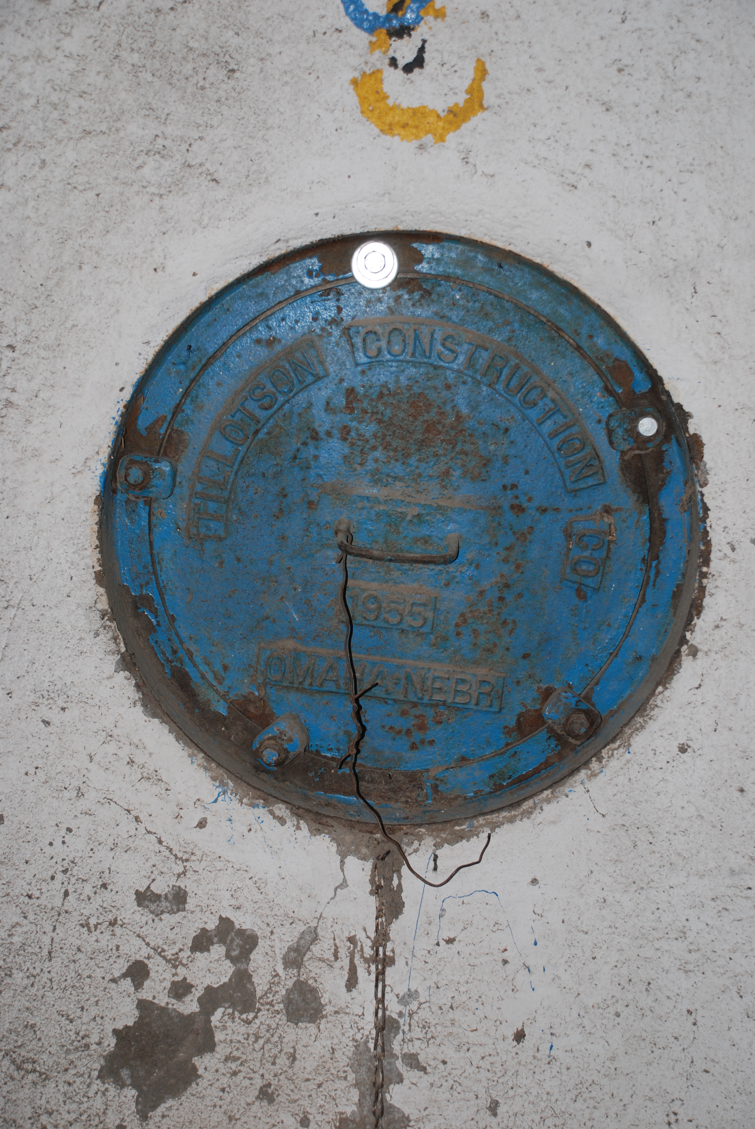 The old Mayer-Osborn annex had a pretty good lean and some leaking problems, so it had been slated for destruction first, with the status of the main elevator left in question. But the main elevator was losing chunks of concrete and was deemed a hazard, so it came down soon after the annex. Forest River Colonies, of Fordville, North Dakota, a Hutterite-owned company, tore down the elevator and its annex, with the scrap going to Columbus Metals in Kearney, Nebraska. My hopes were dashed for recovering an intact manhole cover with my grandfather’s Mayer-Osborn company name on it.