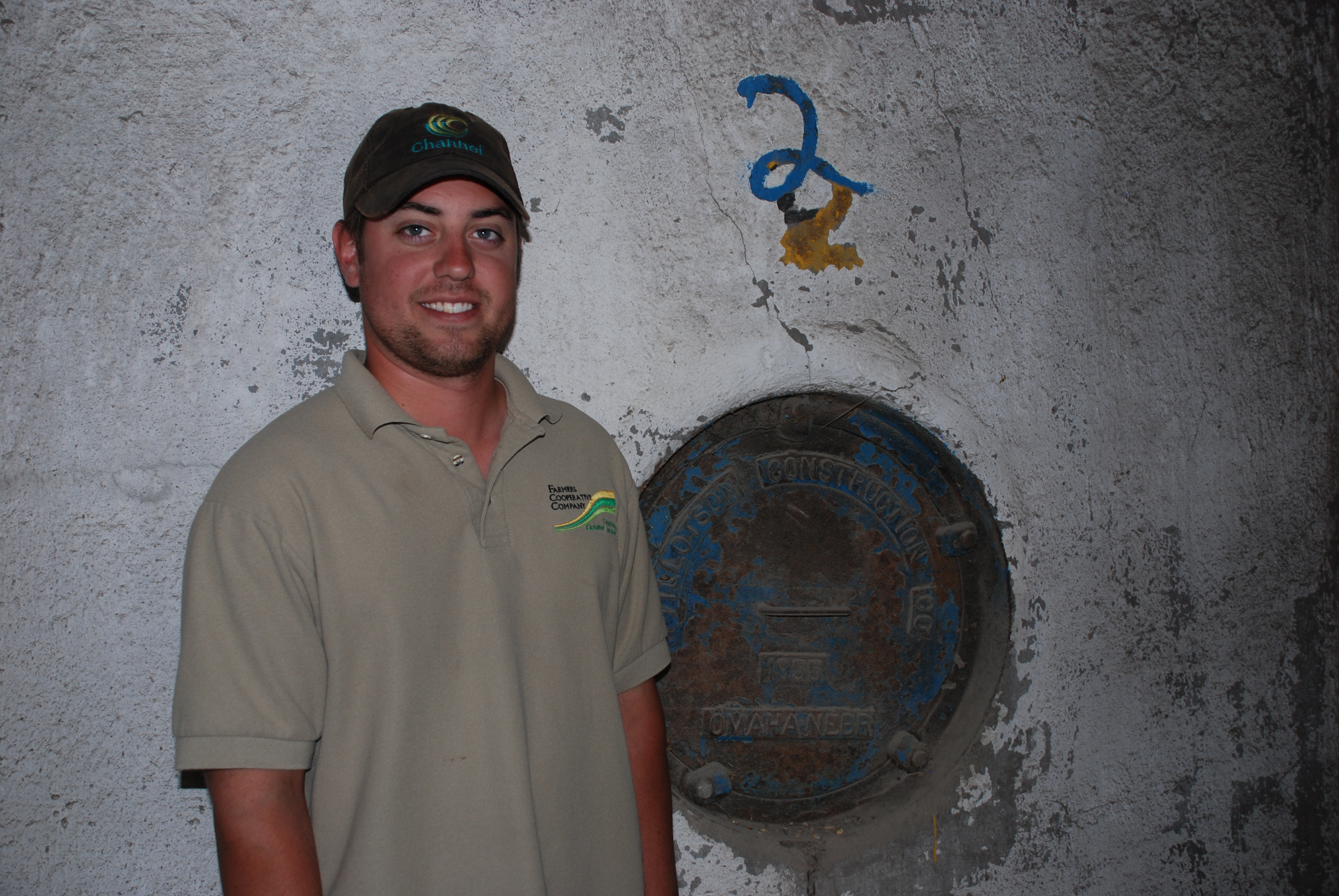 Inside the Ag Valley Co-op office, business was in full swing. A truck pulled up, and a corn sample was vacuumed up and tested inside the building as I watched. Newer elevators were handling all of the grain. Turena Ehlers and Charla Werkmeister, employees of the co-op, told me how it went.