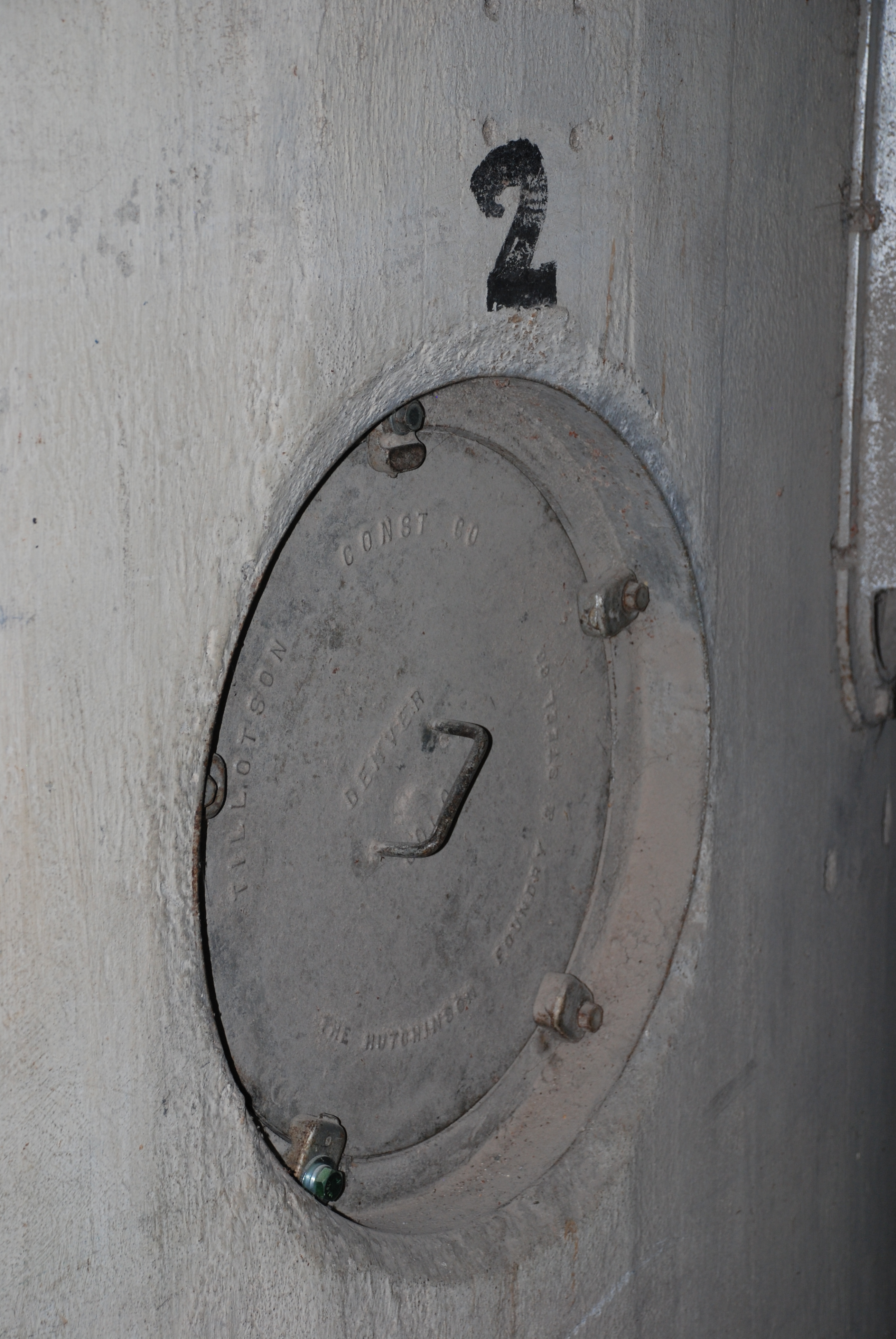 He pulled up in his truck, fished out his keys, and took me into the elevator to look at its interior, including the manhole covers that positively identified the elevator as a J. H. Tillotson project.