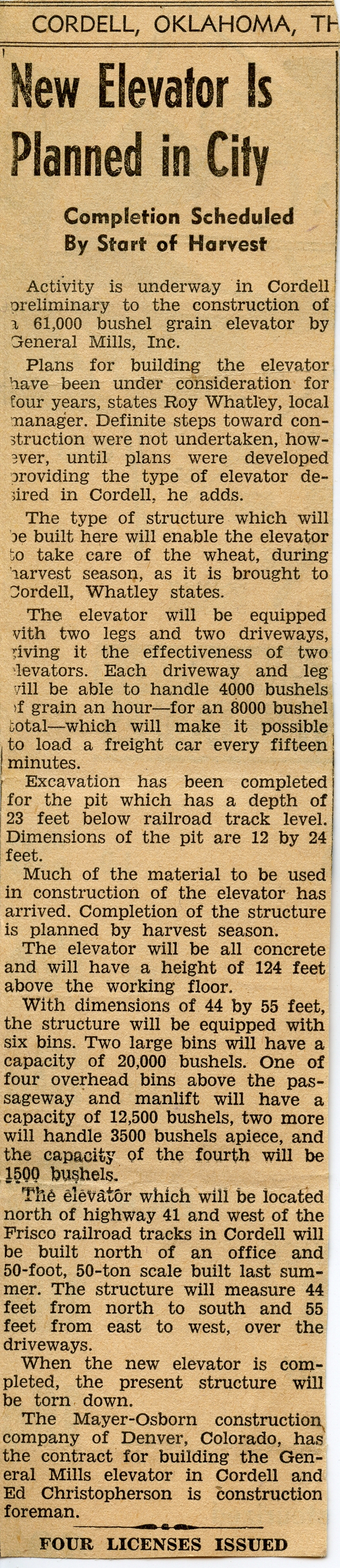 - The Cordell, Oklahoma elevator project fused engineering prowess with family ties (ourgrandfathersgrainelevators.com)