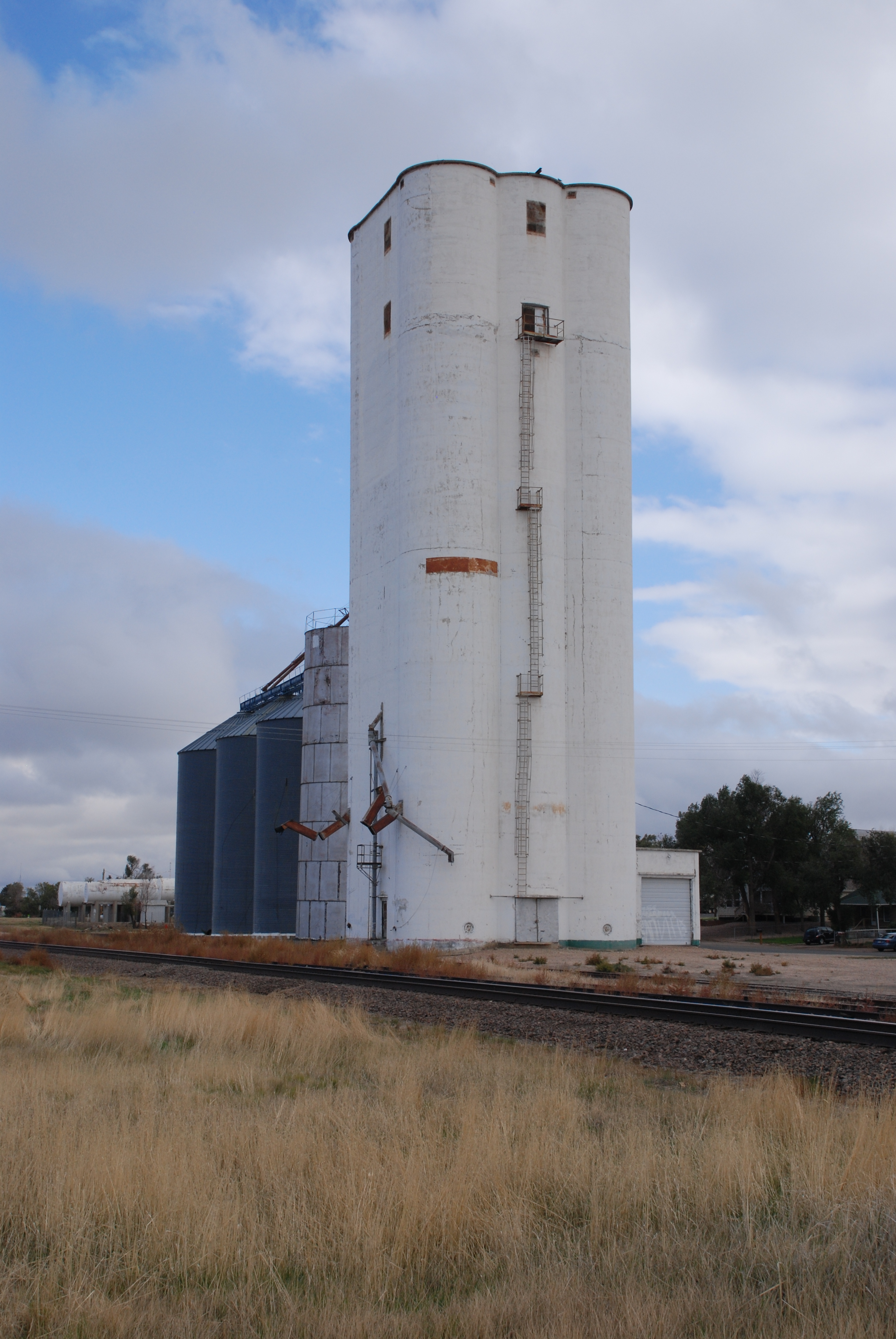 This extreme view shows the elevator before painting. The individual pours can be seen in the drawform walls of the bins. Click on the photo to enlarge the image, and you’ll note the man leaning out of the window opening on the left.