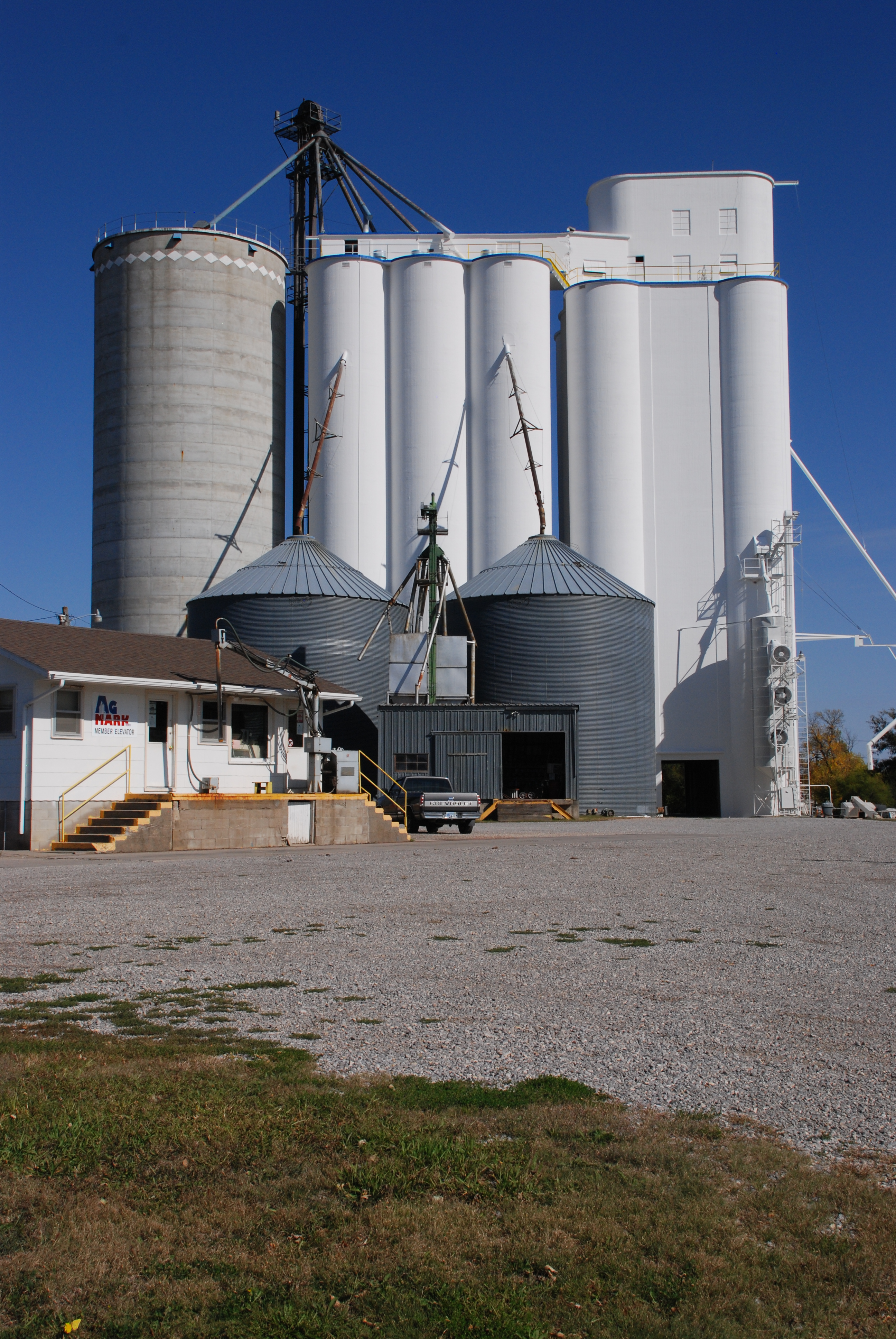 Sporting a fresh coat of paint, the trademark Tillotson elevator with its curved headhouse still operates.