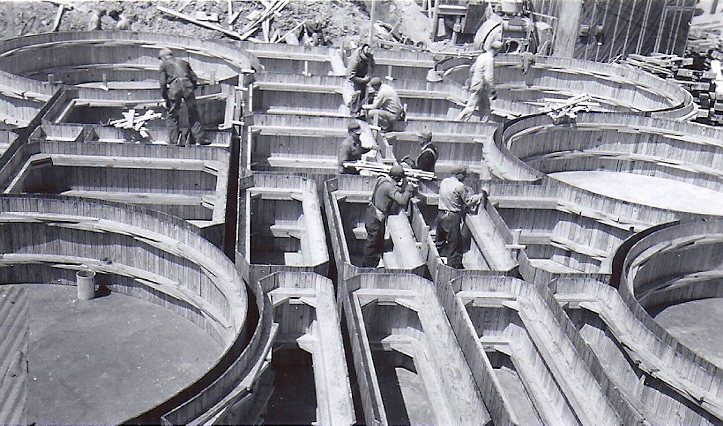 scan0008 Published July 14, 2014 at 723 × 426 in Newly discovered photos show Tillotson’s big Alta, Iowa, grain elevator in 1950 ← Previous Next → Bin formwork in place at Tillotson Construction’s Alta, Iowa, elevator in 1950. Post a comment or leave a trackback: Trackback URL.