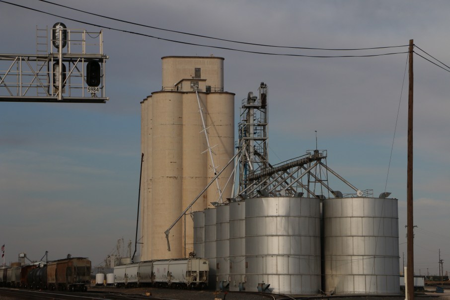 1951 Tillotson grain elevator at Hereford, Texas, as seen April 2018 on Our Grandfathers’ Grain Elevators Texas-Oklahoma road trip.