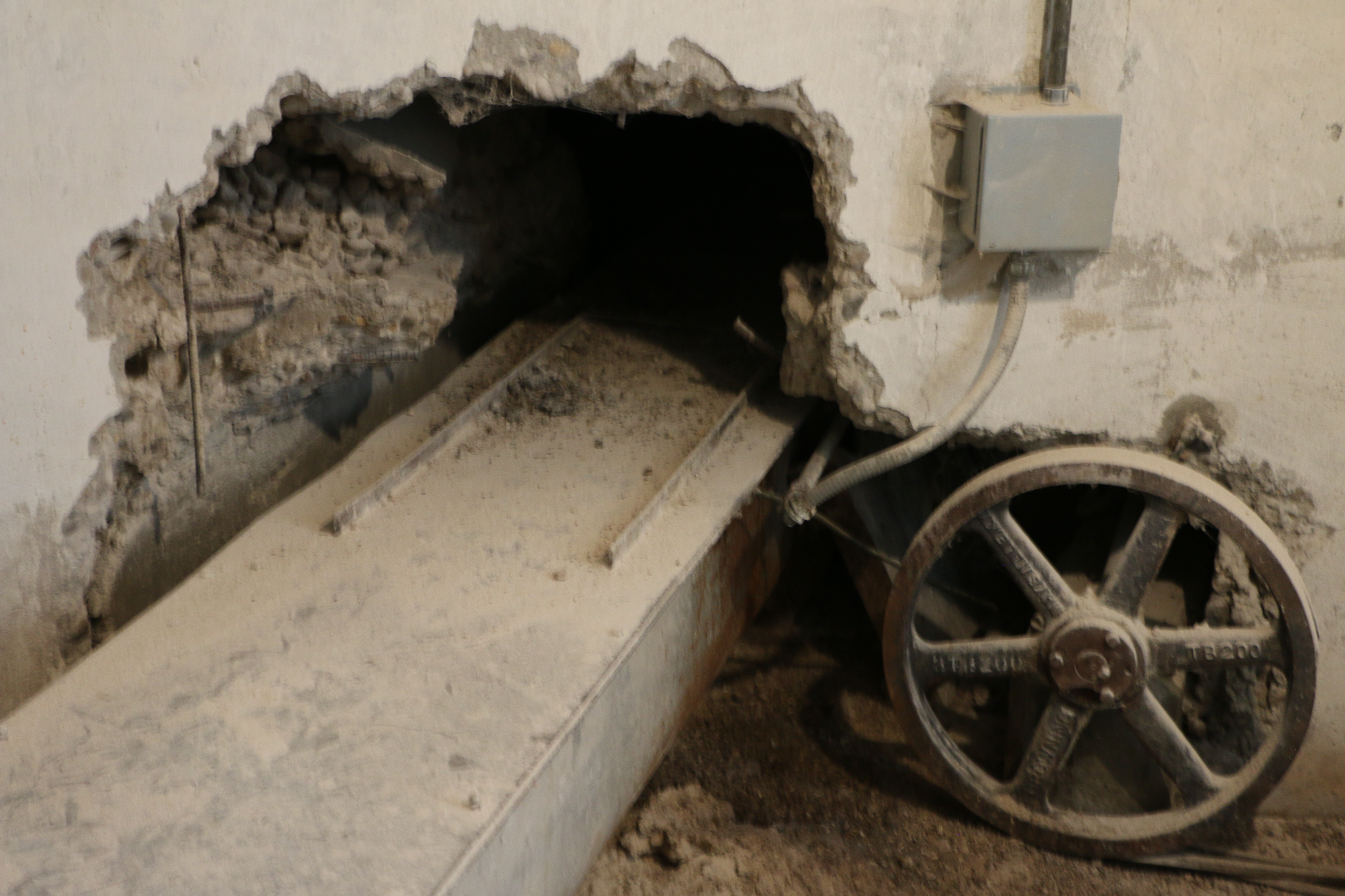Detail view of Tillotson Construction Co.’s 252,000-bushel grain elevator built in 1950 at Bushland, Texas.