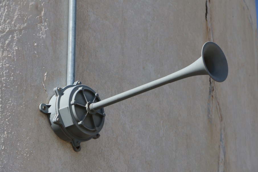 Horns at the High Plains Co-op’s elevators in Meno, Okla., warn of leg overload. Sensors monitor the situation “so you don’t have to have a man up there,” site manager Matthew Thomsen said. If the horn sounds, “You want to be sprinting.”