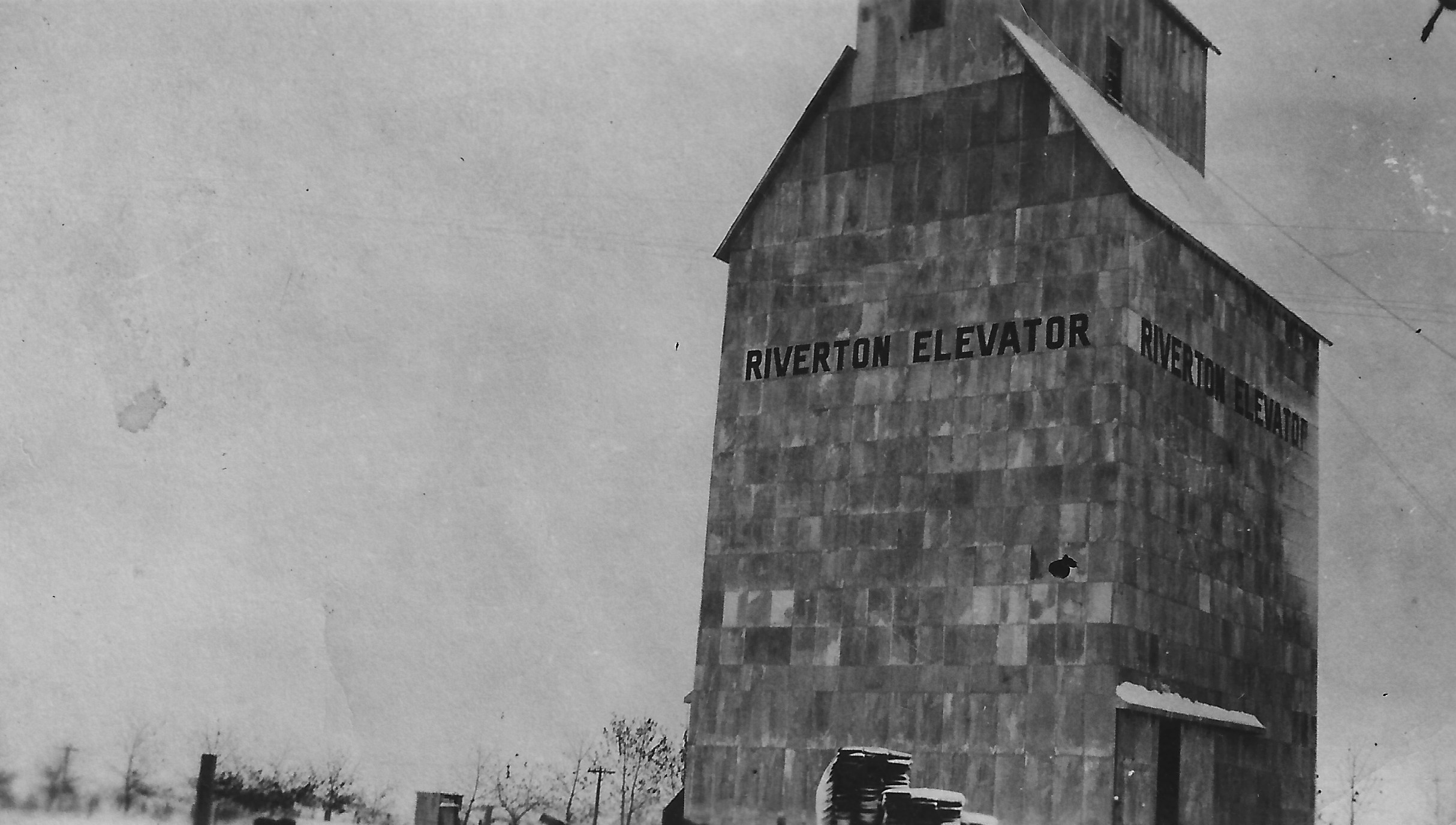 The latest batch of photos from the Tillotson archive includes this picture of a metal-clad wooden elevator as seen on a bleak winter’s day. The only notation on back of the photo is “1-2,” which tells us nothing. And within the image, we see no sign or object that could help us pin down the location.
