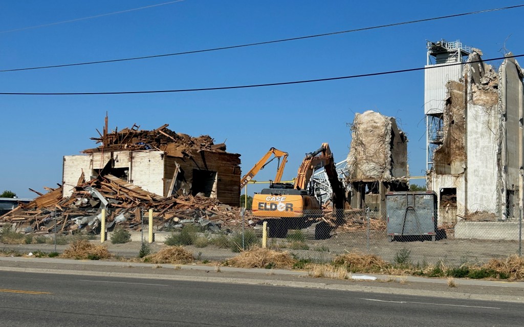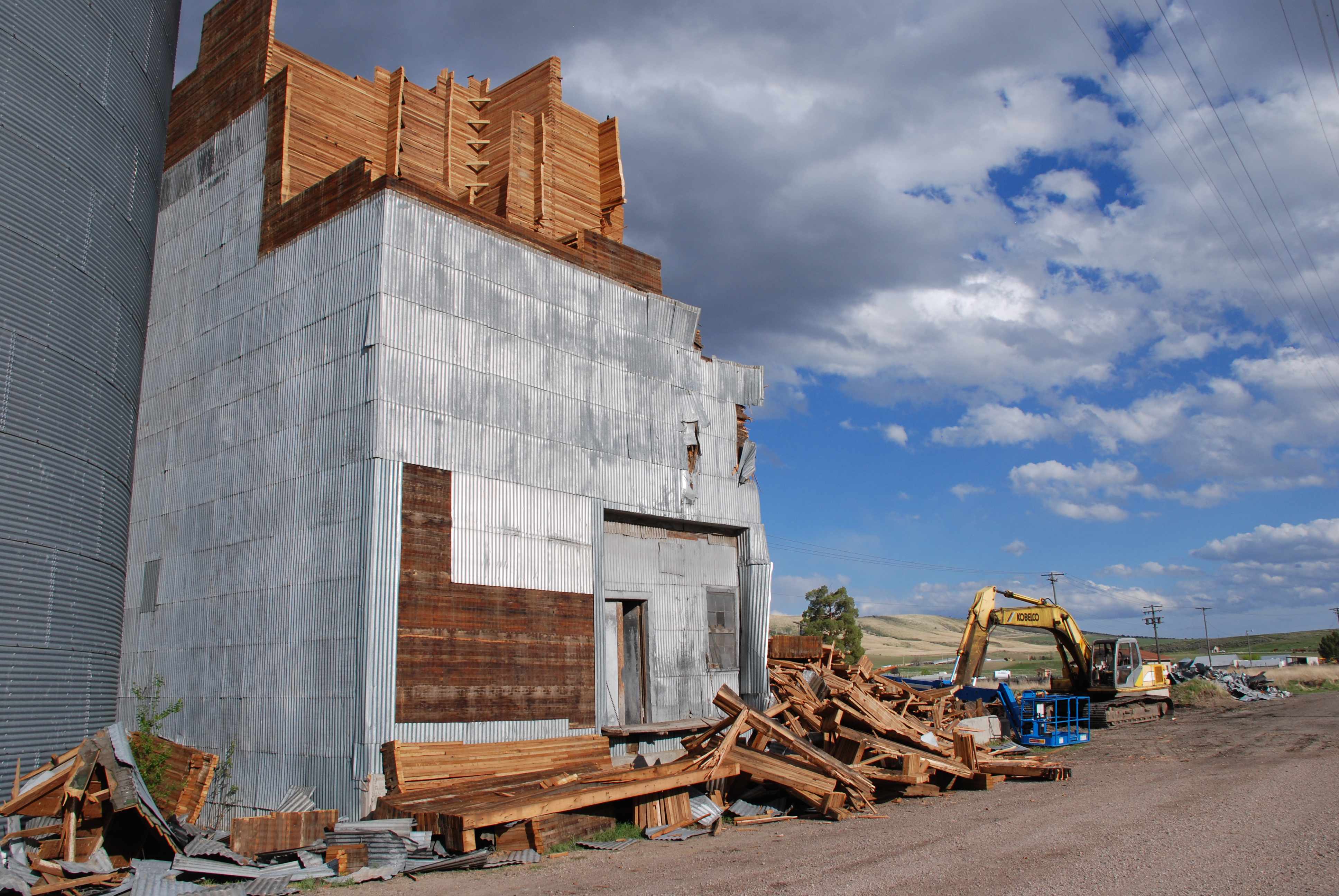 I caught the very end of a demolition in Billings, Montana, recently, and stopped for a couple of snapshots. The old wooden mill was mostly shredded lumber, and the concrete bins were a tangle of rebar and gravel, with a few remaining hulks. In a few days, there would be little left. It’s a depressingly familiar scene.