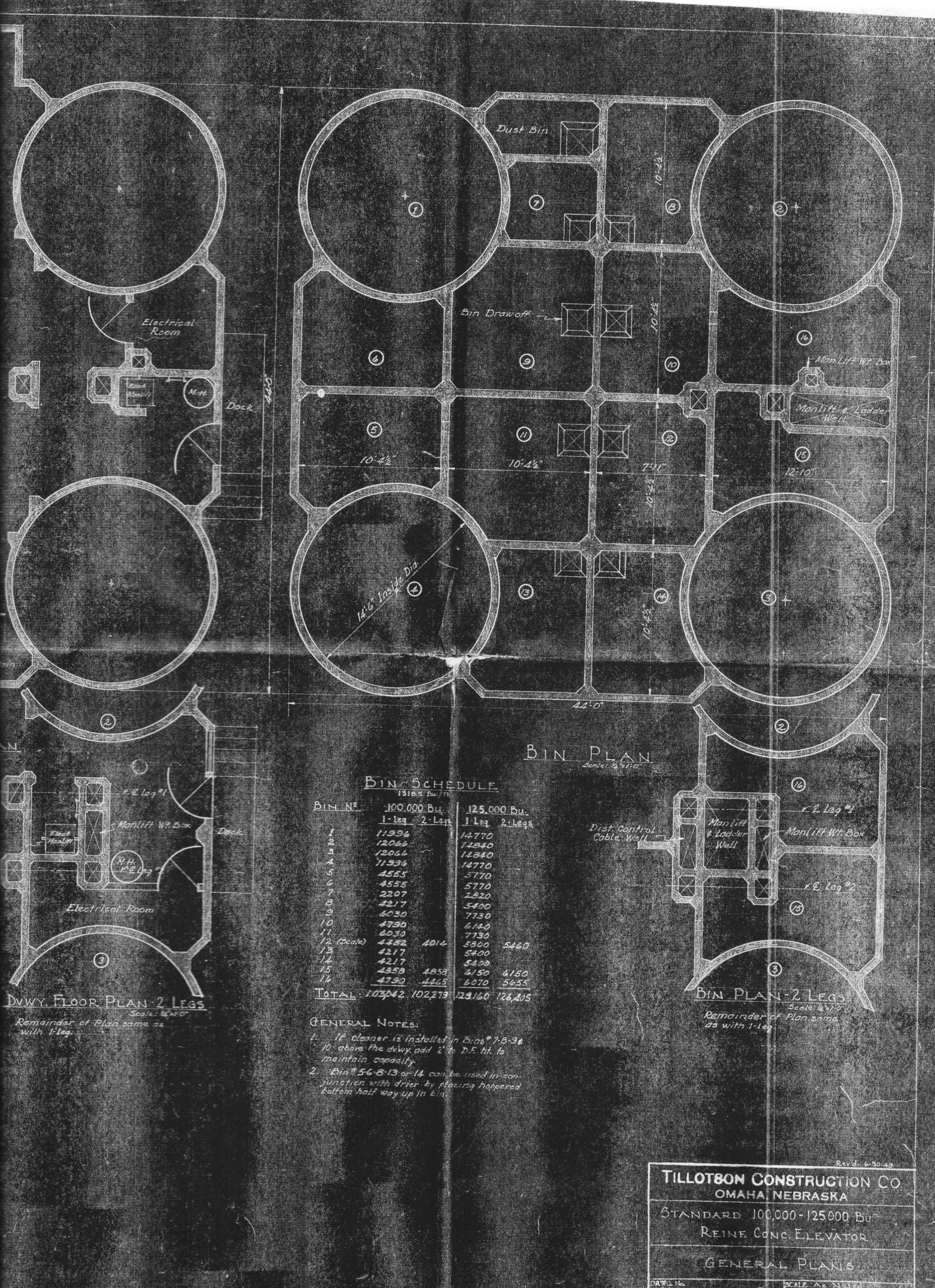 Our favorite moments in this pursuit are personal visits to our grandfather’s elevators, but we also have been lucky in getting our hands on construction records. Not long after we got going on this project, Uncles Tim and Chuck Tillotson put their heads together and came up with valuable documents.