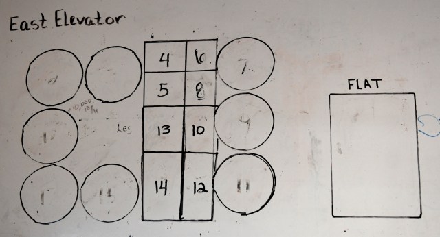 Tim pointed out the bin diagram for the elevator.