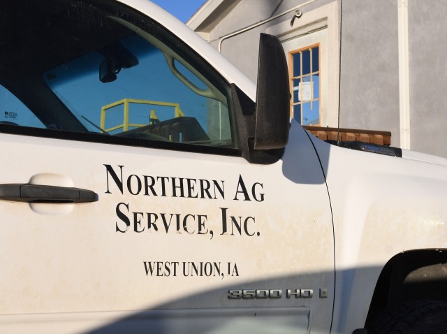 As a result of the April 1st merger of two Iowa stalwarts–the Farmers Cooperative Company and the West Central Cooperative, the Odebolt elevator complex will lose its “FC” signage and gain the name Landus. Landus is a brand new, giant cooperative based in Ames, Iowa (painters will soon be dangling off the sides of elevators all over Iowa implementing the name change). During my visit, the co-op in Odebolt was adjusting to its first day under new management.