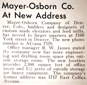 Followers of this blog know that we have puzzled over a few mysteries while tracking our grandfathers’ elevators. The most difficult story to reconstruct, thus far, was how the Mayer-Osborn Construction Company met its demise.