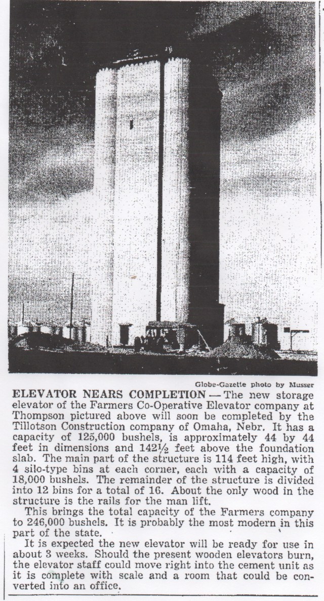 The “Churdan Plan” was used for a number of Tillotson elevators, including Glidden, Sanborn, Gilmore City, and Thompson, Iowa; Greenwood and Fairfield, Neb.; and Montevideo, Minn. The construction of elevators using this plan spanned from 1949 to 1952. Specifications varied according to an individual customer’s requirements.