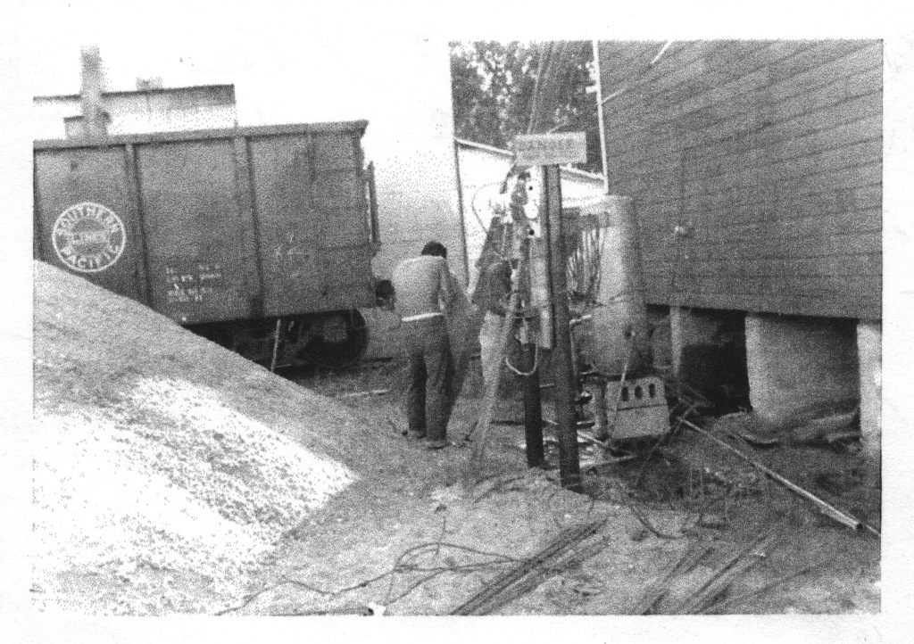 Marvin: I just mailed copies of some pictures I had. It’s showing all the rebar they put into the base of it, into the footings. I sent four pictures, and it shows all the rebar that went into the base. And in the center of one picture, you can see the dump bit, or the boot pit–we called it the boot pit–that was put in where they dumped the grain.